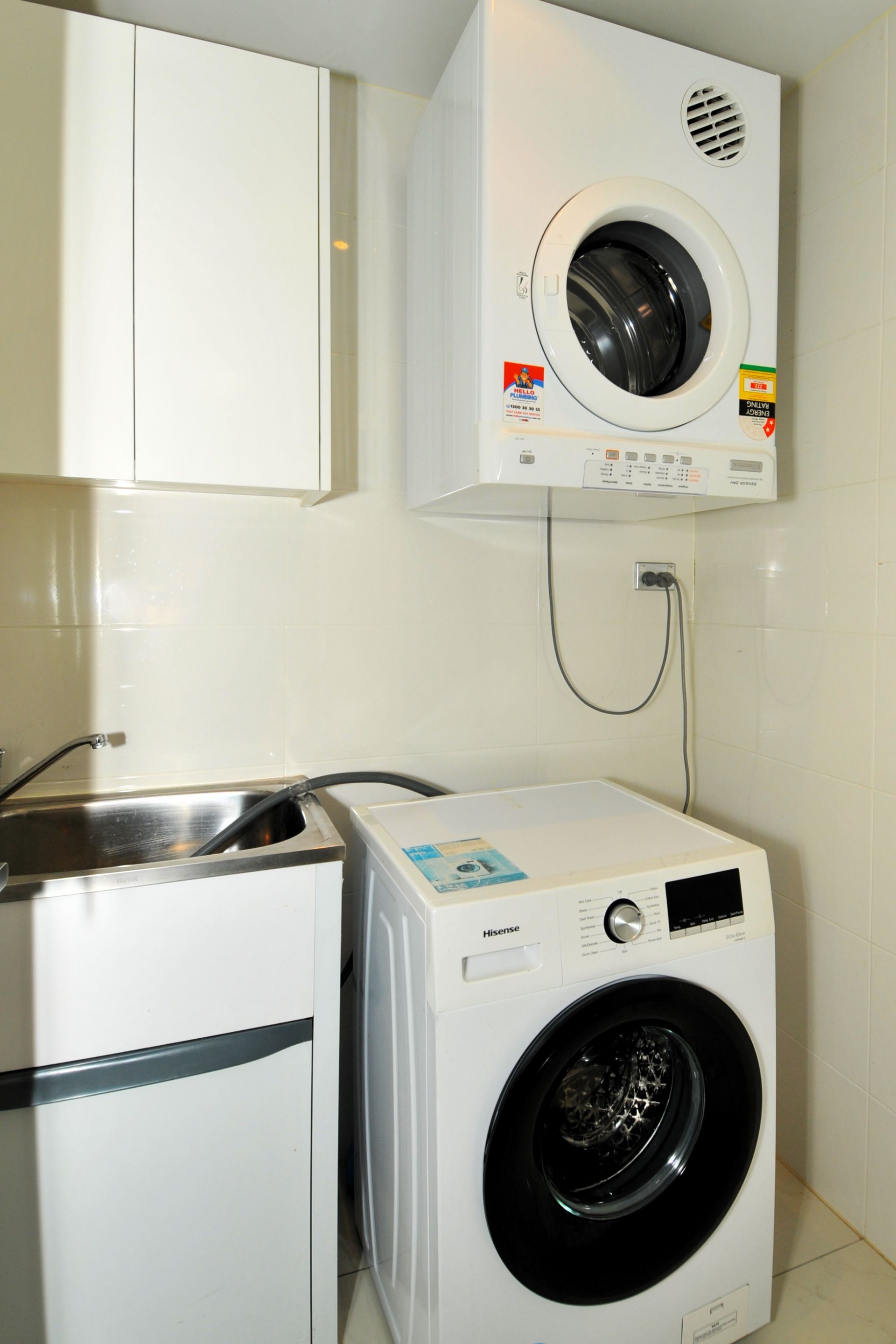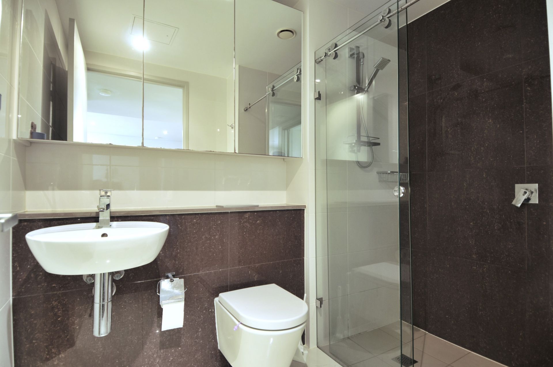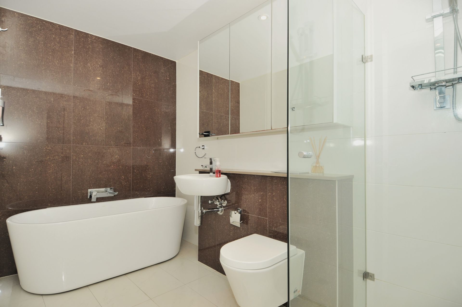 - Modern tiled bathrooms with mirrored cabinets